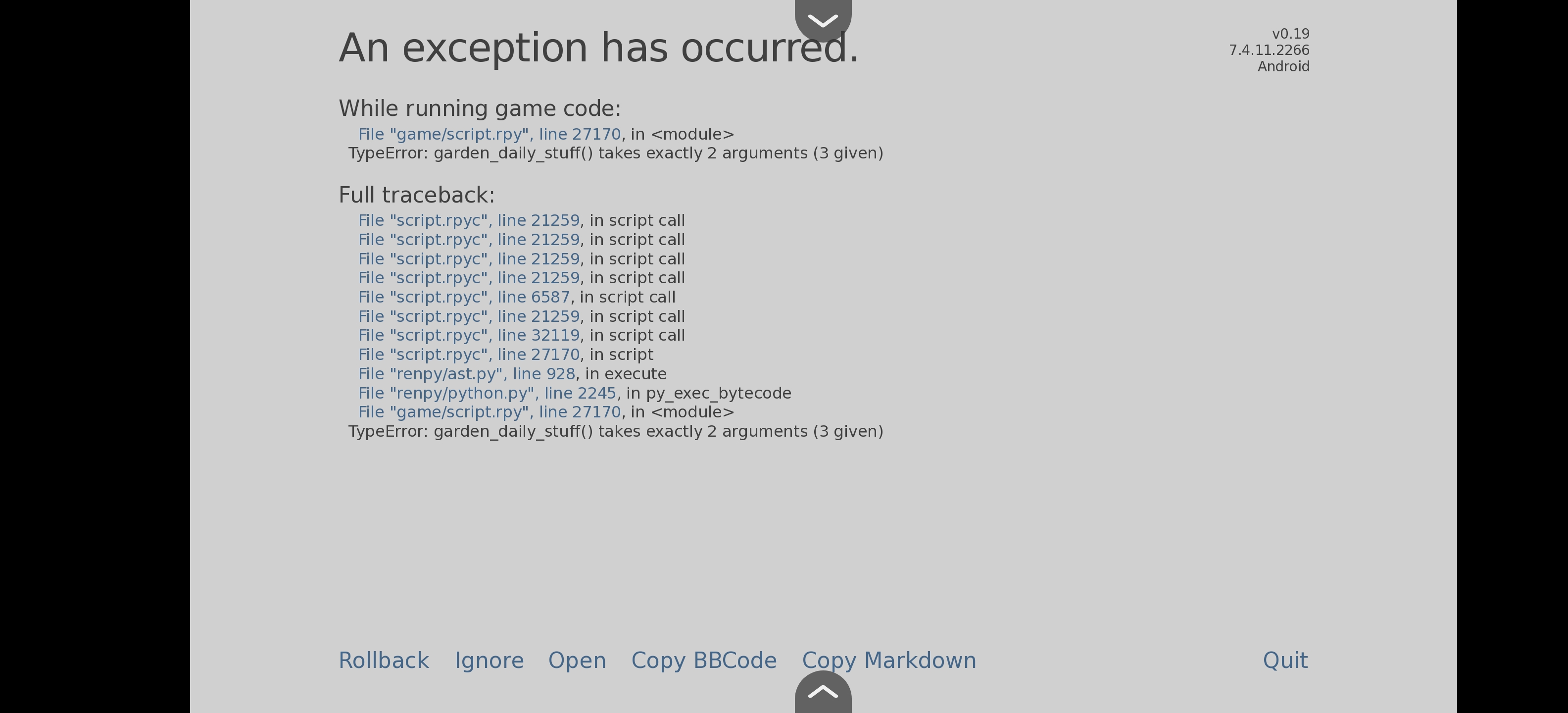 On Android, since I updated the game all of my saves load an error. I also get a different error at the start of the day. I tried to do a clean install and just move the save files over, but I have the same errors. This is the start of day error: