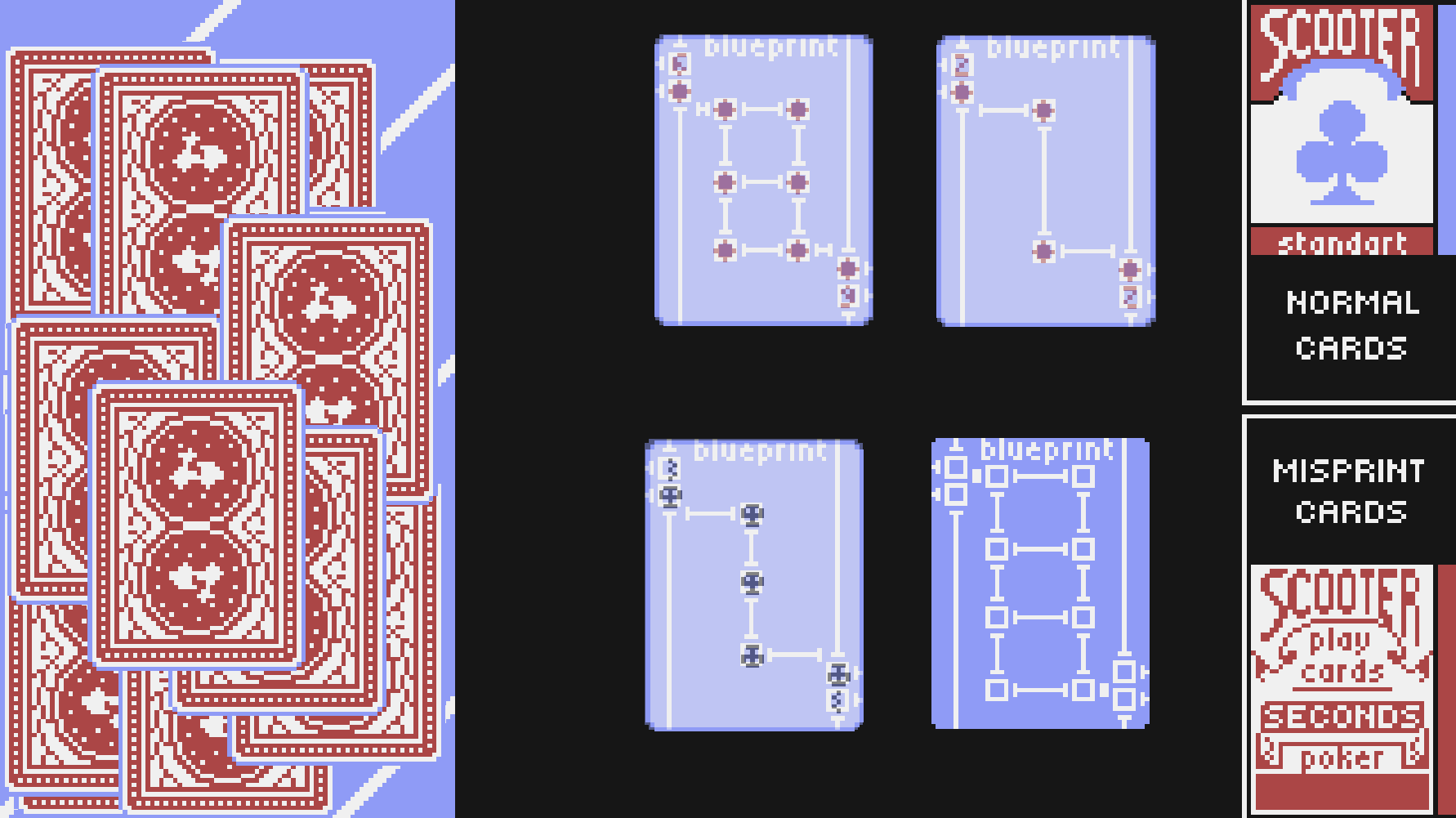 Good day, I want to tell you about my game. This is a game called "LOOK AT THE CARDS", the essence of which is reflected in the name itself. In the game, you'll have to carefully examine the products of the "SCOOTER" card factory and identify "normal" and "misprinted" cards. After visual analysis, you'll use drag and drop to move them to the desired area on your workplace.
