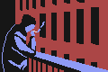 Frame of the protagonist standing on the balcony of his rented apartment after work