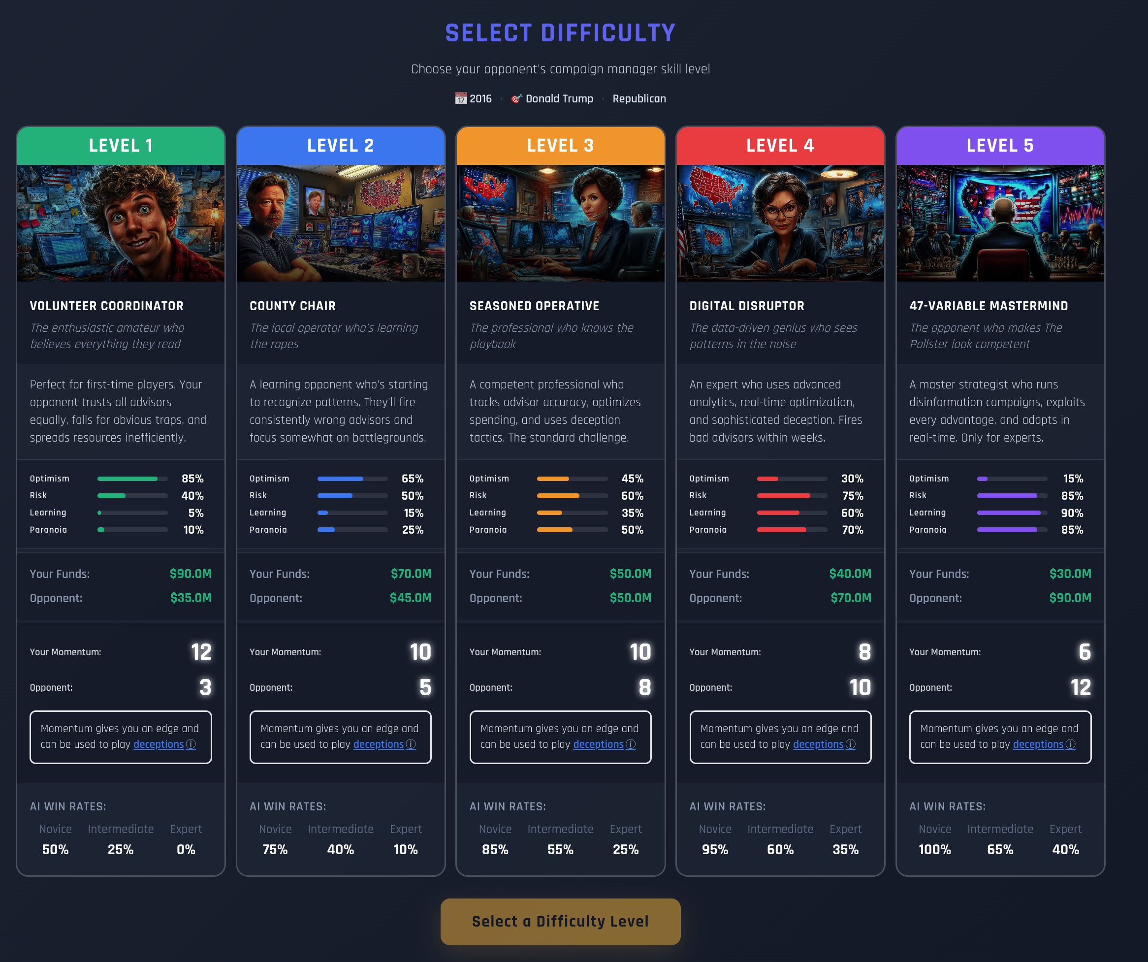 - Momentum system - early wins and great debate performances give you an edge