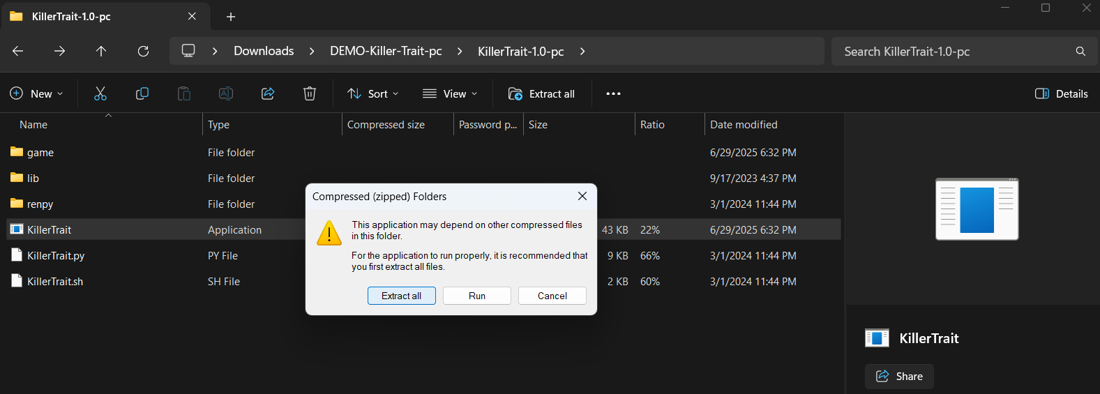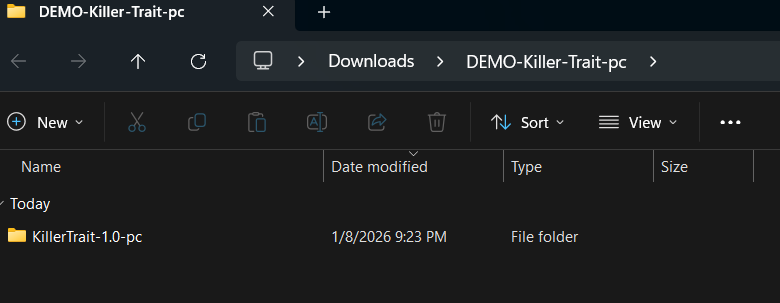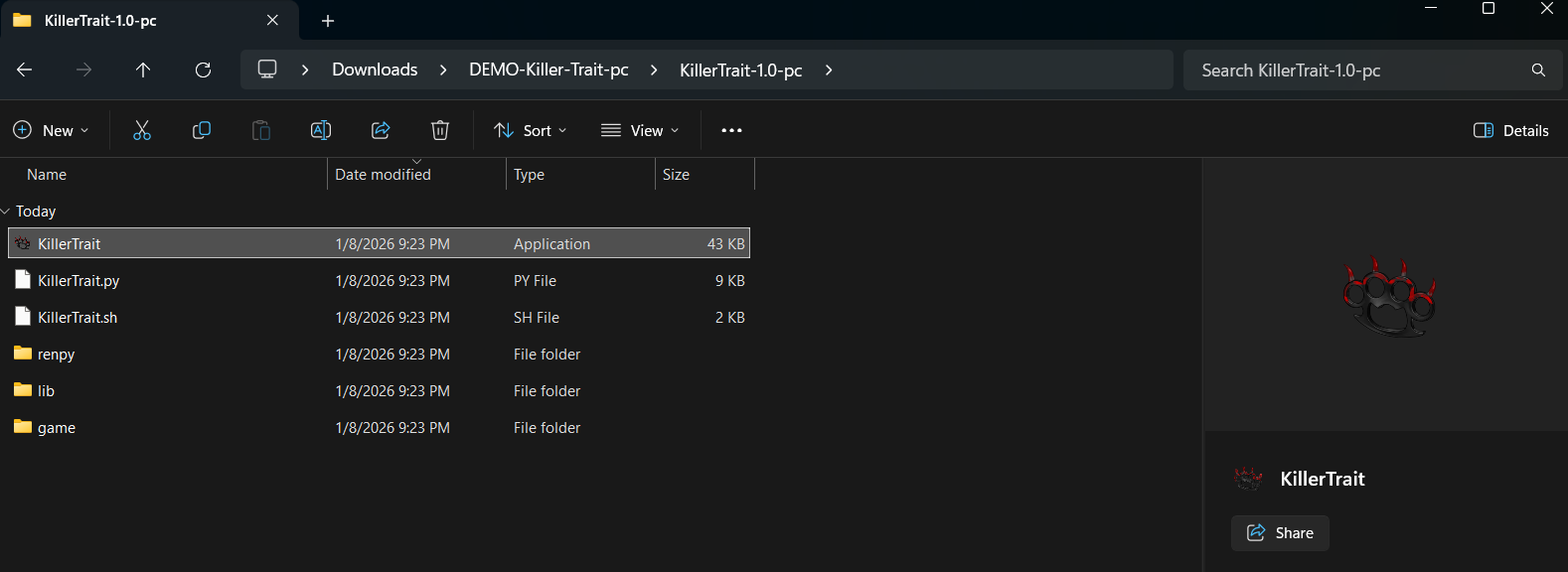 2. Inside the folder, look for the KillerTrait file that says "Application" on the type of file.