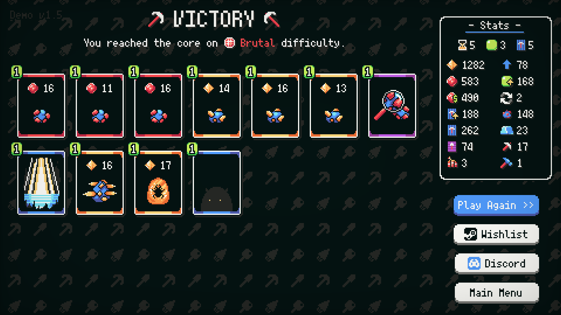 Finally managed a win on the new update! This one’s a fun one. The new visual effects “juice” up the game quite a bit, and I love the fact that you can now “deckbuild” with the flippable cards instead of just perks.