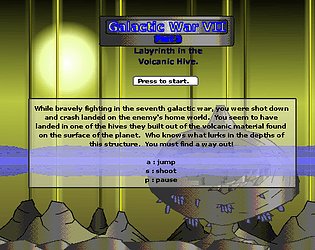 A simple, pixel-style platformer following Galactic War VII (Part 1), with original music and visuals.