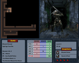 Explore mazes, defeat enemies, and become stronger in this Lua-powered dungeon crawler.