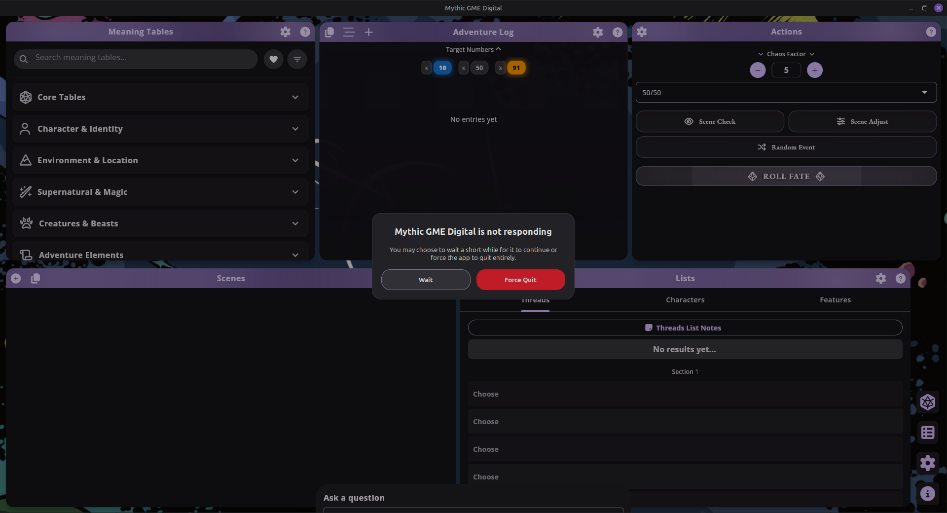 Creating and editing scenes is still a little iffy. Every time I click the name or summary text box to edit it, I need to wait about 25-30 seconds before I can actually type anything. That said, it does work and I haven't had any crash's in the short 1 hour test I did of the Linux and Flatpak downloads (I'm still some what new to Linux so I'm not sure if there's a difference, besides the fact that one you just extract and the other you install via terminal.)