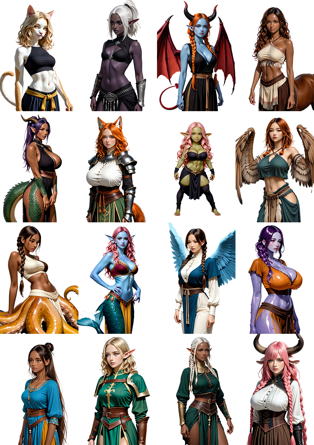 All races, clothed and nude, but no pregnant sprites. Female and futa characters only. 618 characters included.