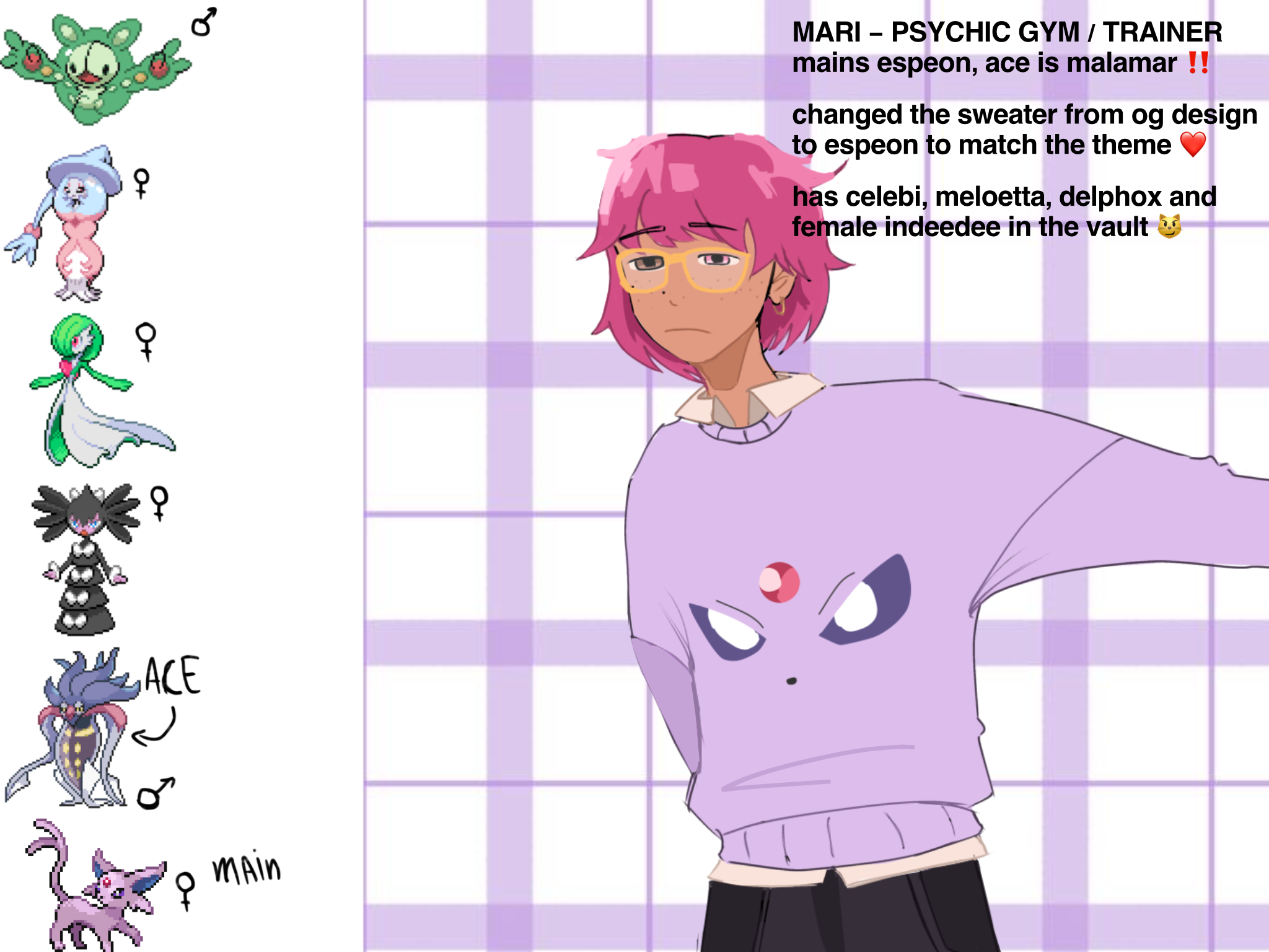 okay so im stopping this rant here (even though i wanted to go to further steps w this) cause ts is getting long as hell ๐ญโ๏ธ also i do not have powerscaling/strong pokemon team in mind when i do this!! these pokemon r purely based on the aesthetics and vibes they give me regarding the character im pairing them with. if there are any spelling mistakes ignore it brah โ๏ธ