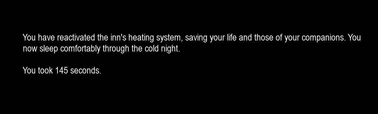 If you look at the game page and the README, it says you have to make it to the road to the East (right). My one regret is that I don't convey this anywhere, especially when there's a bare bones intro that could've perfectly had the text go across the screen. Unfortunately I didn't think of it until the next day.. Thanks for playing, glad you got the comfyness of the fire.