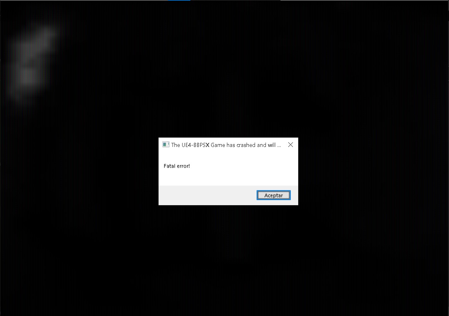 as soon as i downloaded and executed the game it goes from fullscreen to a window in black and displays a sign saying "UE4-BBPSX has crashed and will close" "fatal error!"