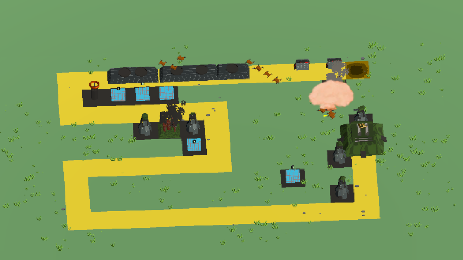 You build towers and factories to supply your towers with ammunition and defend against many different machines!