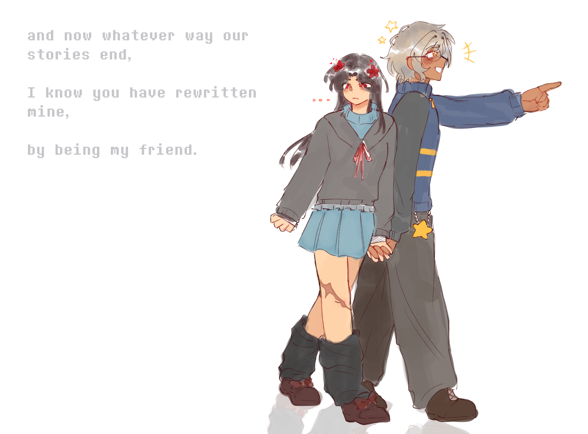 before the new years, id like to thank this Visual Novel for getting me back into drawing and writing again. The characters were so well written and so lovely that it managed to make me write my own characters too.