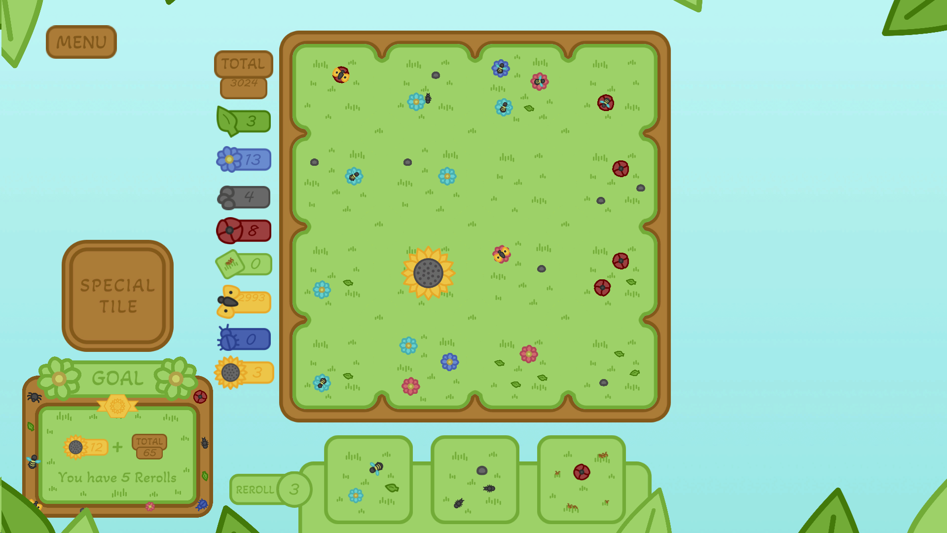 My one confusing point is I had trouble telling the interaction between "flower" and "poppy" and "daisy" keywords e.g. with the lake challenge, the clover, and the butterflies. It seemed like for the clover poppys counted? But "flower" and "poppy" are different for other uses of the keyword? (Or maybe not! You get 1 point per flower pollinated, so do you get 1 per poppy too?) I couldn't quite understand.