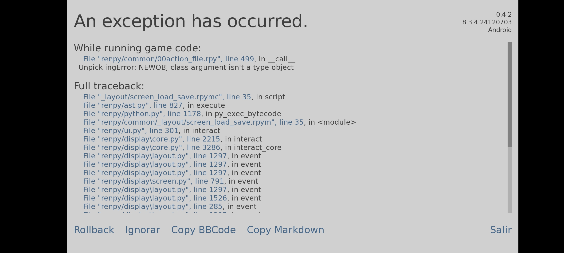 Acabo de descargar la versión y cuando trate de cargar mi partida ocurrió esto