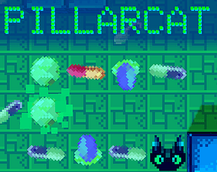 After a bit brainstorming I first had the idea of a caterpillar, from which I played with the word: caterpillar >> pillarcater >> pillarcat. The idea of consuming pills was already before too, so more or less, "pill" in caterpillar and the name pillarcat was a coincidence, after which I decided not just to turn the caterpillar into a cat, but rather a "caterpillar" with cat head and pill tail.