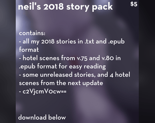 $10 gets you access to all my stories, betas, betas for other games, and basically everything else I post including books. It's a bit reductionist to just see it as paying for each version of The Hotel, but I guess if that's all you care about I could see it being a bad deal.