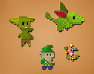 The Monsters Creatures Fantasy pack. Pack contains 3 characters designed for adventure and action platform games.