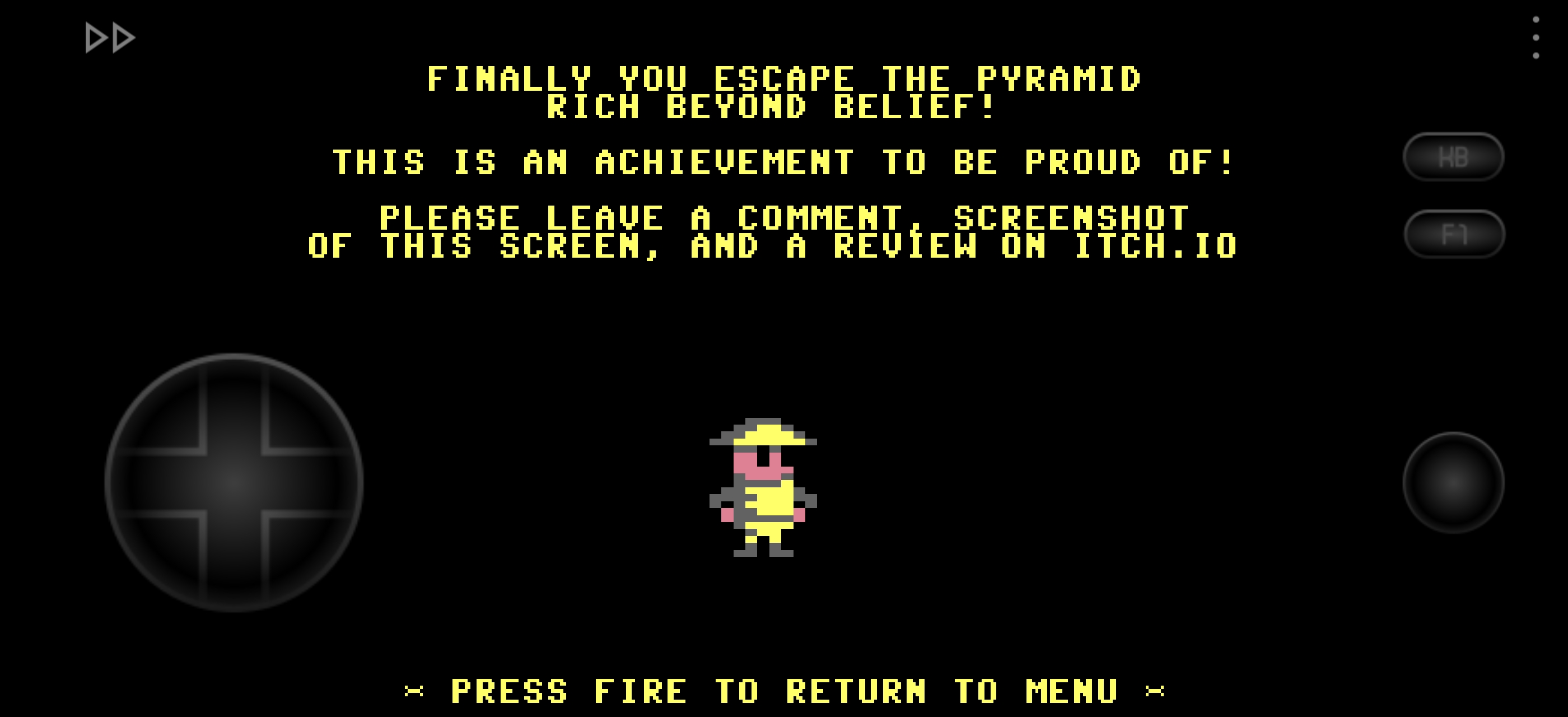 A very nice colorful game 😉 Many Commodore 64 games lack such a color palette. As the editor of K&A PLUS magazine, I can offer you a physical release of your game on cassette tape as part of the 2025 compilation. I must admit that your title caught my eye. If you are interested, please send me an email. I will tell you more details 😉 Feel free to visit our website and my channel 😊