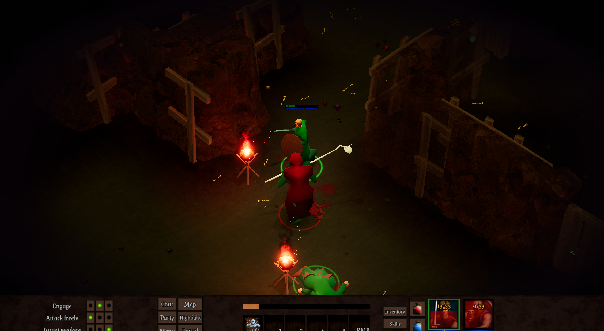 On the level 3 I got unfortunately locked here (I couldn't move down,even without the warlock there) and the game from being very easy suddenly became very hard.