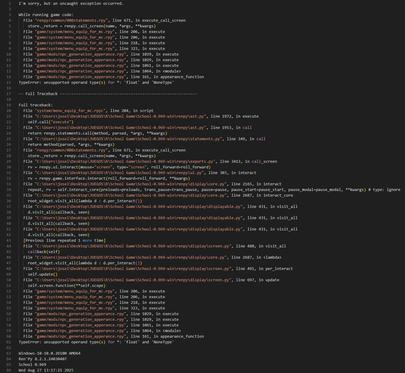 I have a problem or bug in the game, which is that on certain occasions, the girls start appearing naked in a location. For example, the game was working perfectly until suddenly all the characters in the park (only the female characters) started appearing without clothes. This has spread to other locations such as the shopping mall, the convenience store, the temple, and the forest. There are few areas left where all the female characters do not appear naked. Does this happen to anyone else, or do you know how to fix it?