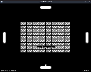 A simple breakout game, you control four paddles (top, right, bottom and left) to hit the ball. The game was created using the PureBasic language/compiler. The source code is included so you can compile and modify it yourself.
