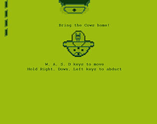 A small action/arcade game where you must abduct all the cows in the current leve to go to the next one. Be careful, because rocket trucks are guarding the cows! The colors are a tribute to classic Gameboy games.