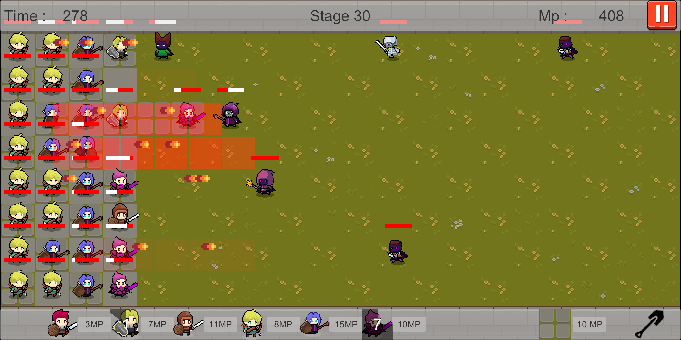 Each stage is a battle in which our allies defeat the enemy's boss first before the enemy reaches the left end.
