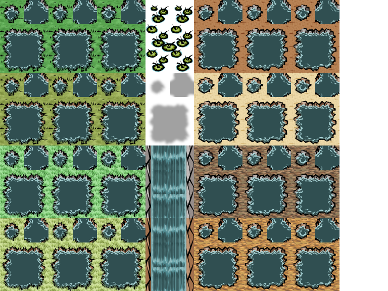 it's not as easy as I would've thought... I'm working on a new system and noticed my work files for the tilesets that I saved, are quite a mess. Please have a look at the ones I can provide right now. Do they contain the graphics that you need already? Otherwise, I will need to check my old PC for the other water tilesets. The old one is, let's say, not easy to work with anymore xD Sorry, that's kinda unprofessional. I'm surprised I didn't seem to transfer the comfortable correct backups for every water auto tileset to my new PC.