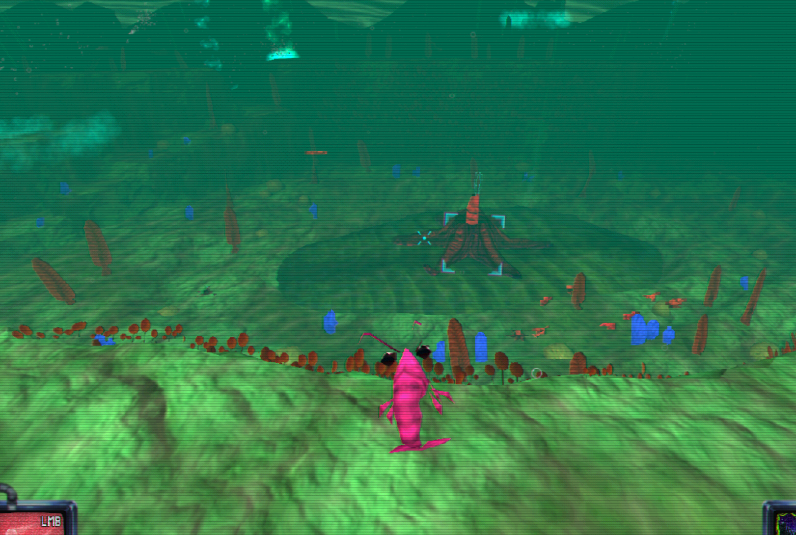I liked the animal enemies much more than the humans. The animals are more varied and serve clear roles, whereas the humans all look really similar. There is a general lack of movement in the enemies, they all either stand there and shoot at you or just walk towards you. Even the floating squid dudes, which you would assume stay at a range and pelt at you, hone right on top of you and just insta-die.