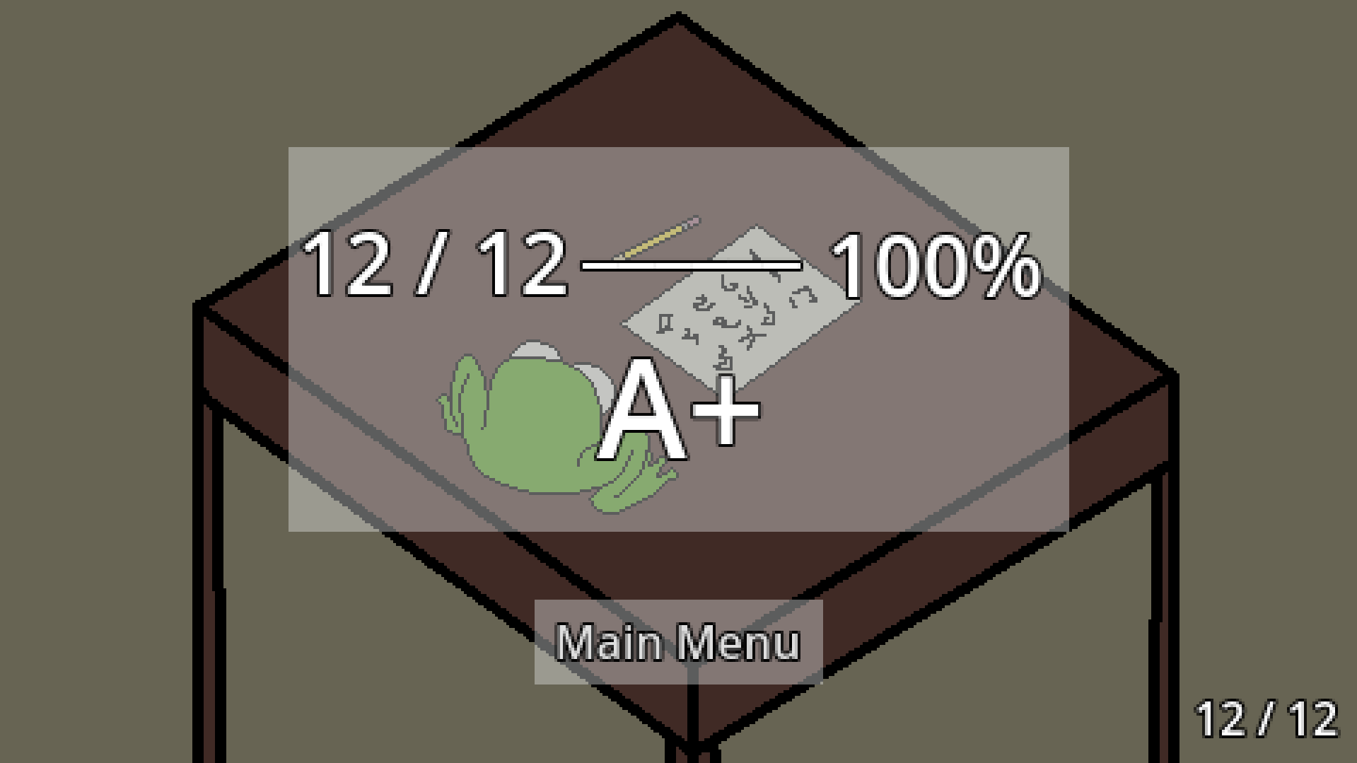 Damn, a bit of a shame the visuals add to be cut at the end, the narrative you made in this was quite interesting, but from what I understood the guy did some weird experiment that turns people to flies/frogs, and at the end you get a taste of your own medicine and end up escaping through the window(having to interact with the window multiple times to leave, in the same fashion a fly hits a window multiple times trying to leave). I'm saying that the mc did leave, but maybe by the screenshot of the frog those three interacts in the window were to communicate despair to escape FROG. Only thing I didn't get was the child the mc was looking for, was the child the frog? Or did the child become a fly and got swallowed by the frog, that's why the mc was trying to disect the frog...
