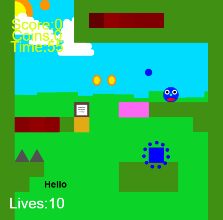 Bluey The Circle is a platformer-action-adventure video game staring the same name as its character. The game allows you to travel though small bitmaps of very large and cool levels with all sorts of things like trampolines, lava-blocks, water, signs, spikes, and NX-cubes. The games plot centers around Bluey, the main character who has a super-hyper speed ability, getting into a conflict with a well-known supervillain in the world known as Cubelord Quadjustify Demetrius jr. (or just Cubelord) who wants to "cube-ify" the world and rule the universe. Bluey has been enemies with this guy and Bluey lives on South Circle Island, An Island where 6 magical rubies make its structure. Bluey adventures through the island and get the rubies and end Cubelords reign! Will Bluey ever make it?