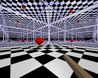 Thank you for playing. Glad you liked it. During the stream you were wondering how the game was drawn. Essentially the entire game is drawn using a raymarching technique called sphere tracing. All the geometry in the room is represented as a signed distance field (SDF); a sort of function which tells the distance between a point and a surface. This function is then repeated infinitely and flipped after each room length to mirror the other rooms. Here is a fantastic article on the subject if you want to know more https://iquilezles.org/articles/sdfrepetition/.