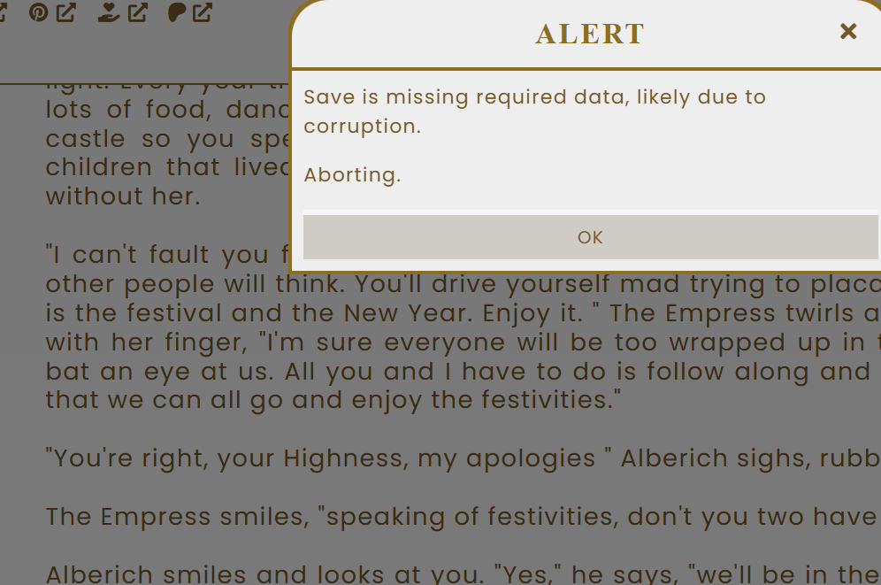 Thought you would want to know there are a couple error codes I came across. Its a good tale so far. I kinda wish we had more information on why the mom has such hate for the pc towards the start. I felt that I did not have enough information on the situation to make a choice on whether I hated her or not. There was not much to go off of other than she is abusive (but not why) and the brother is the one raising you instead. I also feel as if the story was making the mc too overpowering? The queen just throws her into a trial with the ONLY heir without someone to survey them as they do their trial? I just feel that was too much of a plot hole to leave the heir to the kingdom only protected by novices. Untested novices that have barely done any training??? Like I had one spar with the prince but where is the rest of the training or at least hints of it