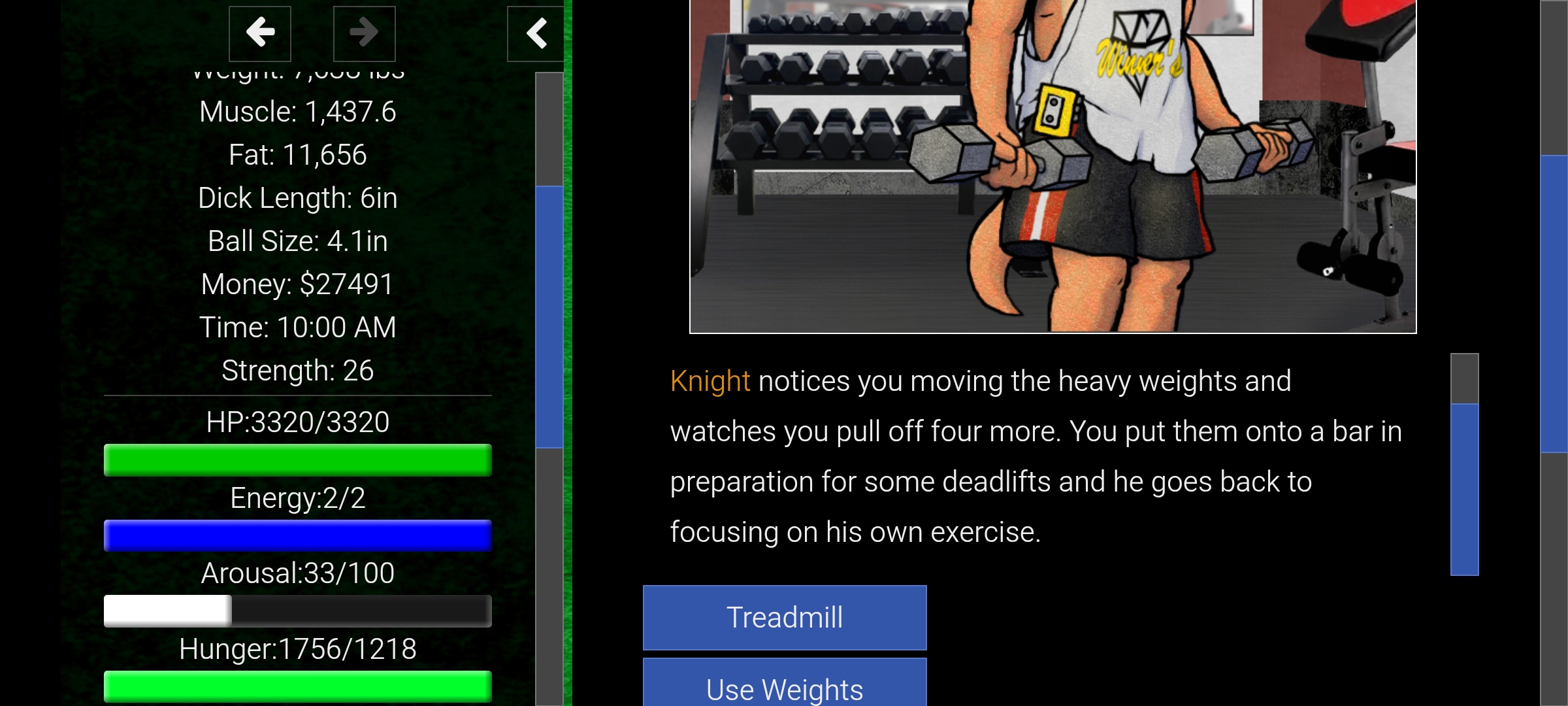 question: I've been trying to impress him for a long time and whenever I tap use Weights to get his attention to me it doesn't respond, could you fix that for me