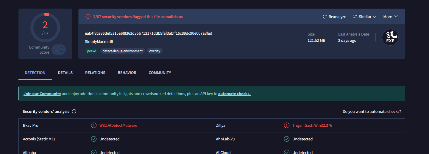 Virustotal says it's been flagged 2 times, what could have flagged this?