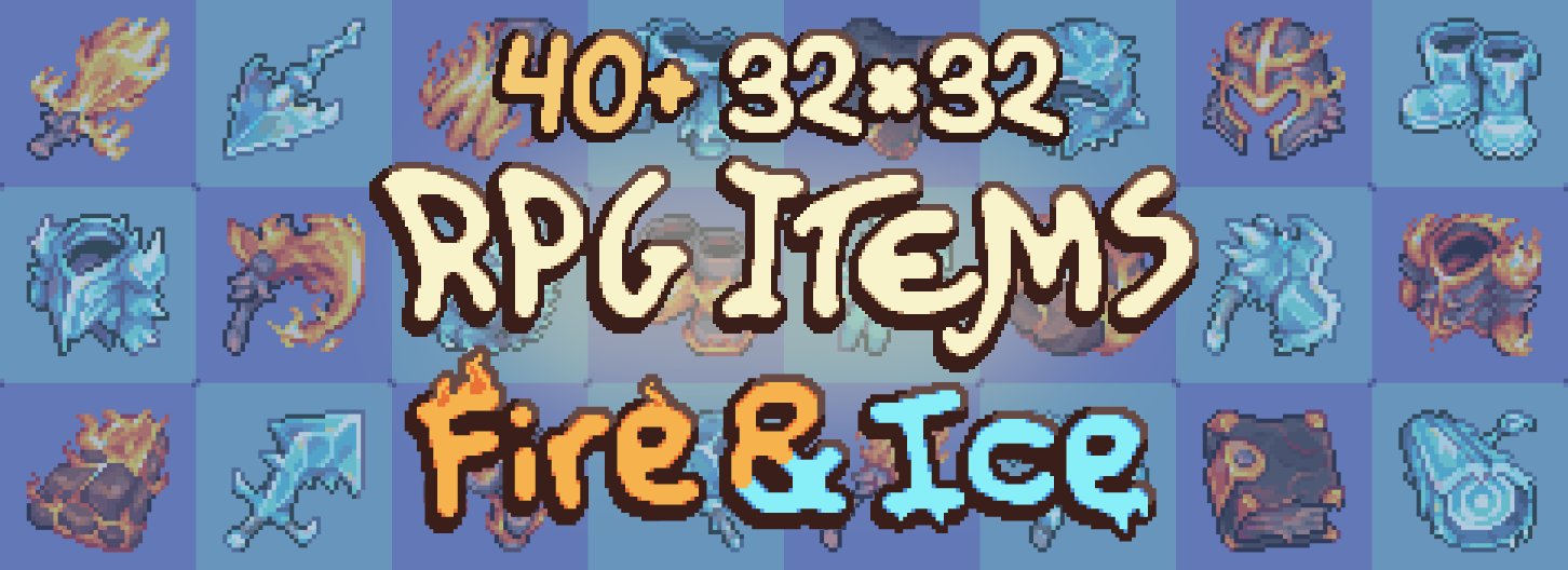 This 32x32 RPG Item pack contains OVER 40+ Fire & Ice themed Sprites of which most are unique designs!