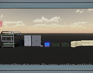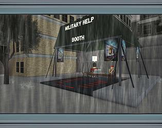 Crafted as a compact military booth featuring interactive NPC dialogue