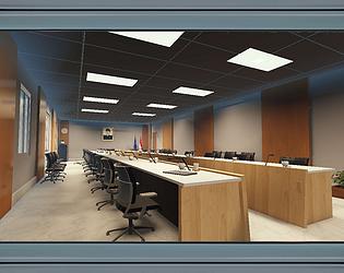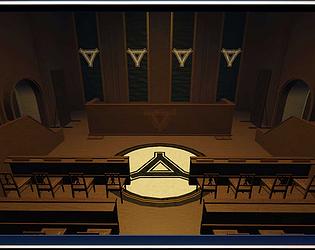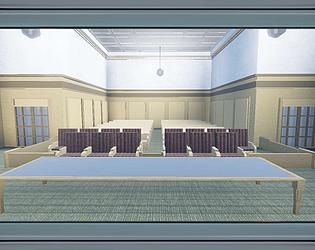 A detailed British courtroom interior built for legal roleplay, trials, and formal events