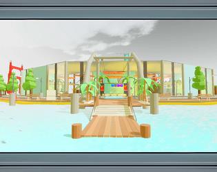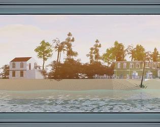 Designed as a coastal dockside environment featuring multiple storefronts, ferry areas, and open waterfront spaces.