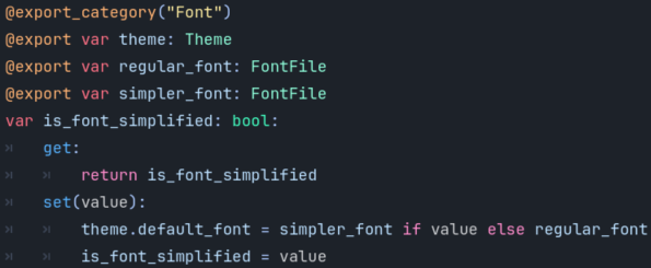First, I'd recommend using a theme (see the documentation for Theme if you're unfamiliar with it) and simply changing its default font via code when you press a button - it's just as easy as changing any variable.
