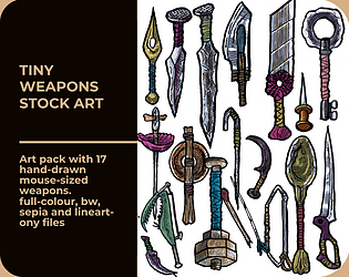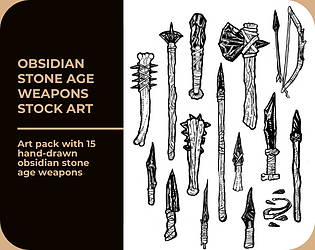 Art pack with 15 hand-drawn obsidian stone age weapons
