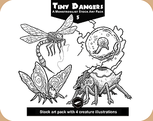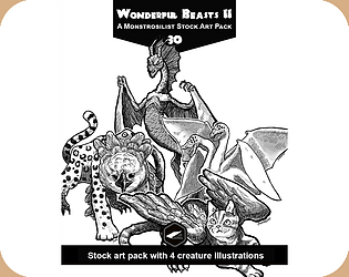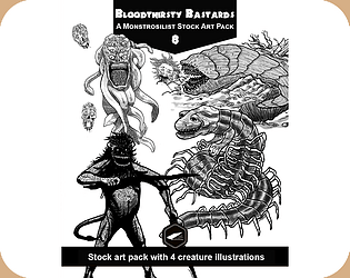 Four hand-drawn BW creatures - stock art