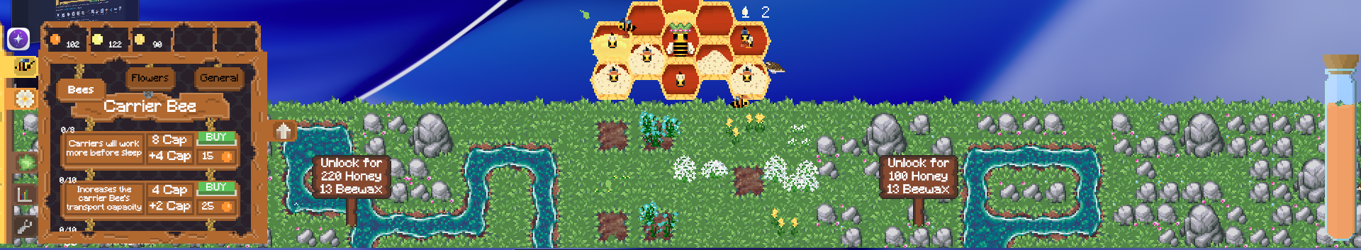 You’re also right about the UI side. Outside of the bee and upgrade sections, I haven’t really done a proper design pass on most of the UI yet, so a lot of it is there more for function than presentation right now.