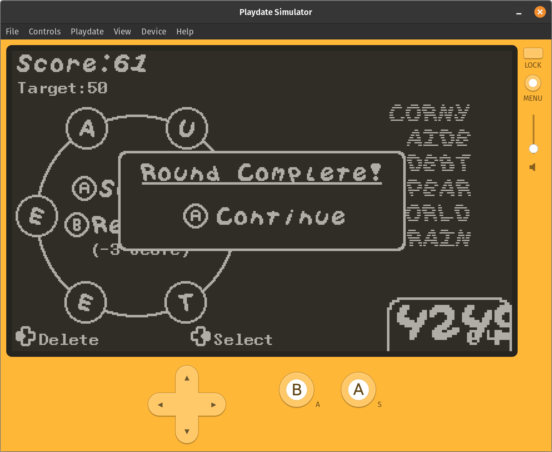 I am mixed on the sideways screen, but I found it downright confusing that the game over screen goes back to the “normal” Playdate orientation.