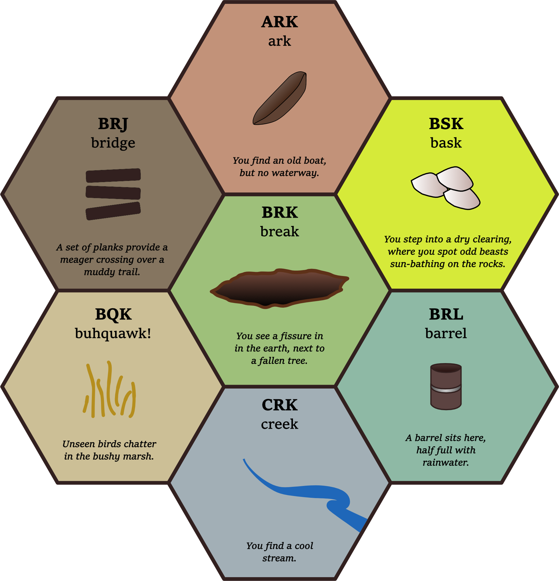Also note these are flat topped hexes. If you prefer pointy tops, that works too, I'd recommend using 1st letter =+NE/-SW, 2nd = +E/-W, 3rd = +SE/-NW.
