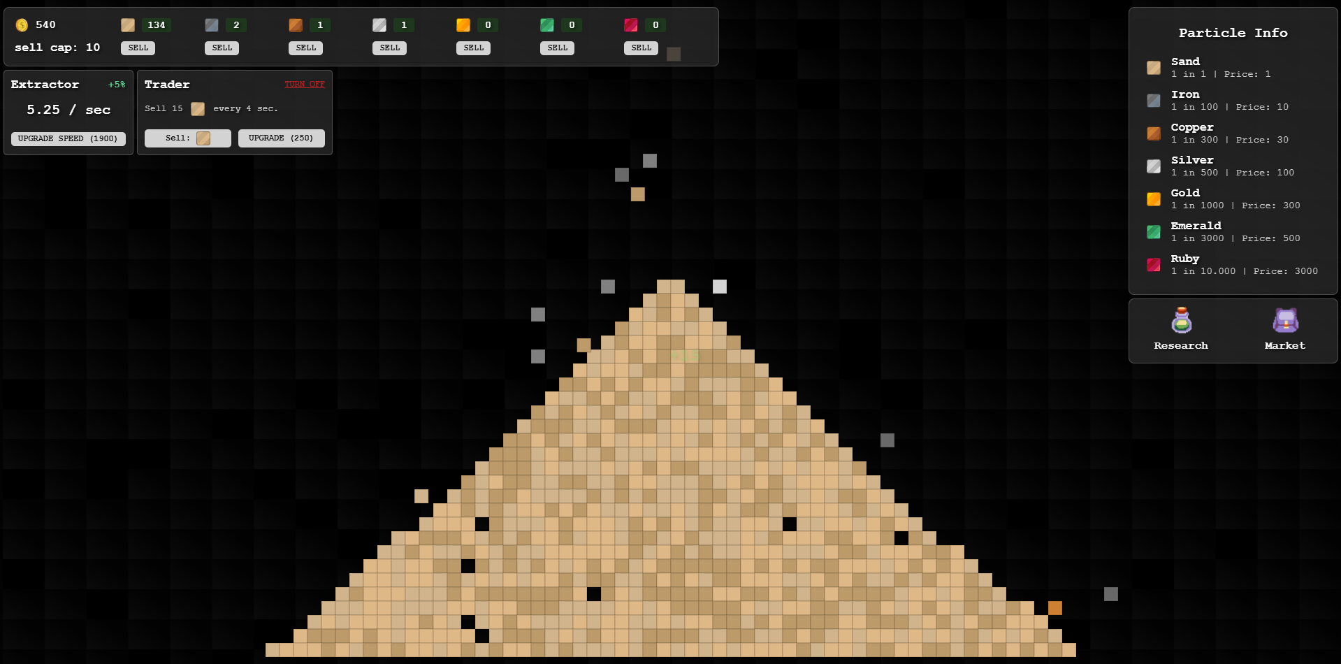 Build your particle empire from falling sand! Extract and trade rare particles in this addictive idle simulation.