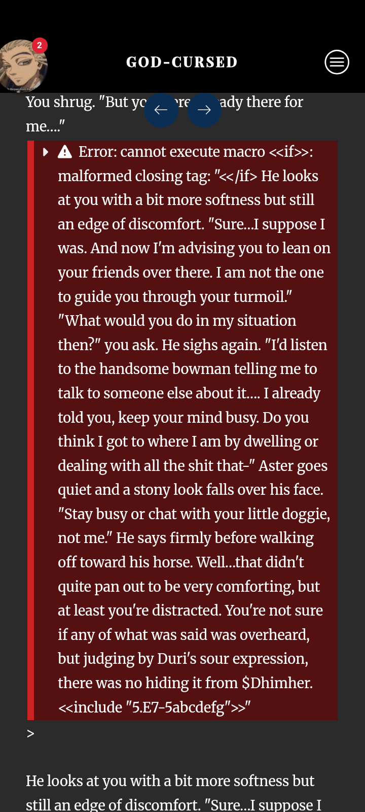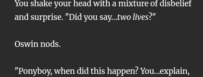 I just finished this and I'm so hooked! Ever since I found this like 3 days ago I haven't been doing much but playing this. Don't know why I haven't found this since I'm always looking for interactive fiction! Keep up the good work!!