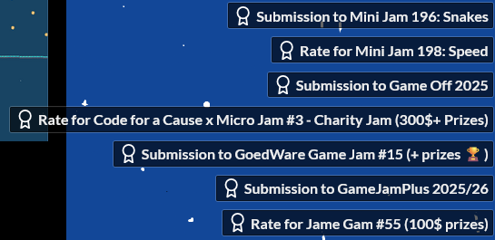 I noticed you removed "double x jump" from the jams it didn't belong in. That was a very responsible move and shows a lot of integrity. Your games show promise, and handling this situation the right way proves you have the mindset of a great developer.