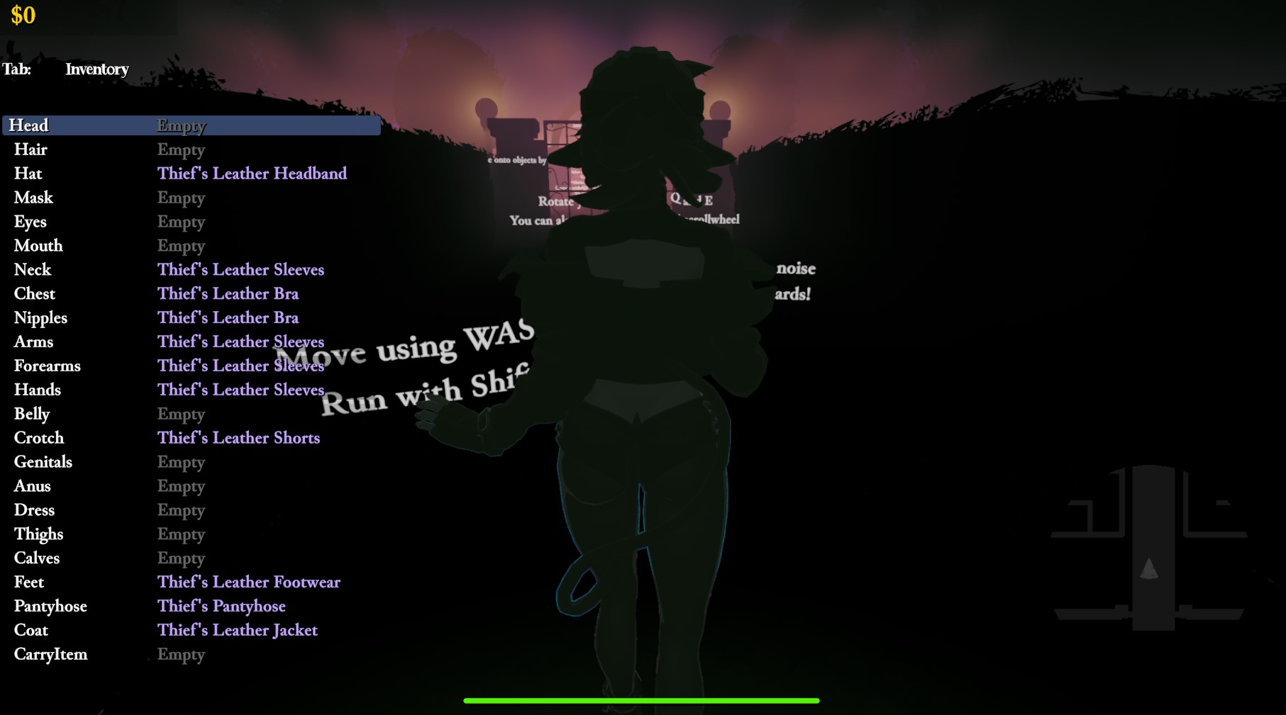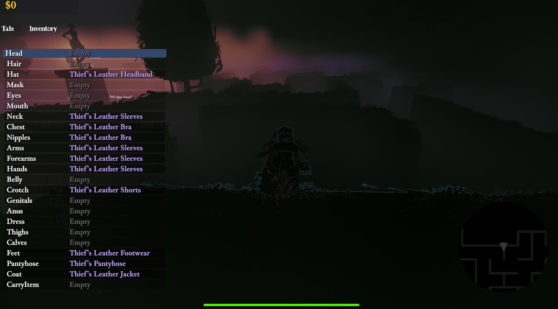 If you back out into the main menu while you have the blindfold on and start a new game, then the blindfold's visual effect will be active, but without the restricted vision range, also it kinda blocks the minimap, but not how it's supposed to. (this bug was also present in previous versions, I was just too lazy to write a bug report)