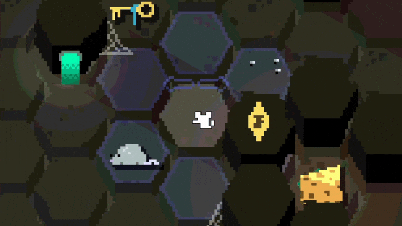 You play as a silly rat trying to reach the cheese. The game allows you to make one type of move - rotating hexes in right/left direction.