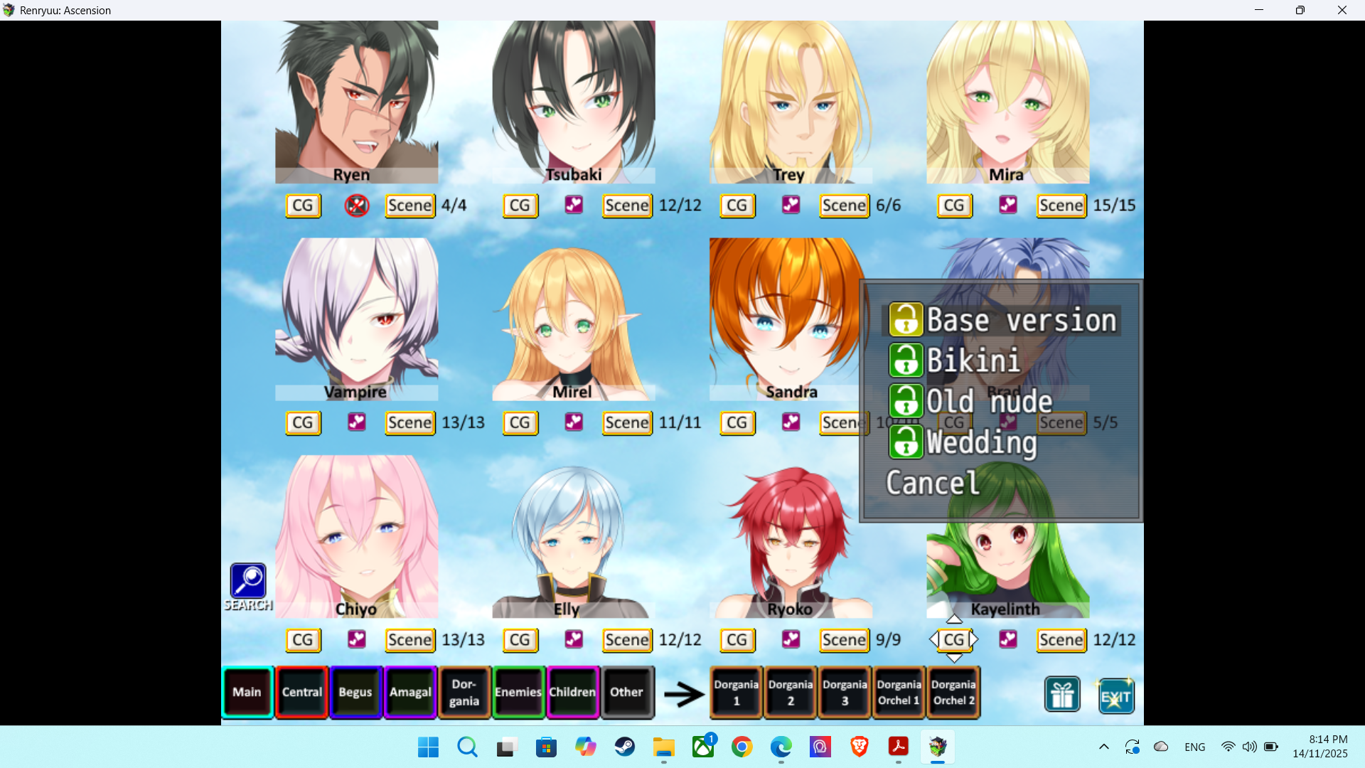 Ryoko Cursed battle axe outfit is missing in her CG and elly cowgirl is also missing